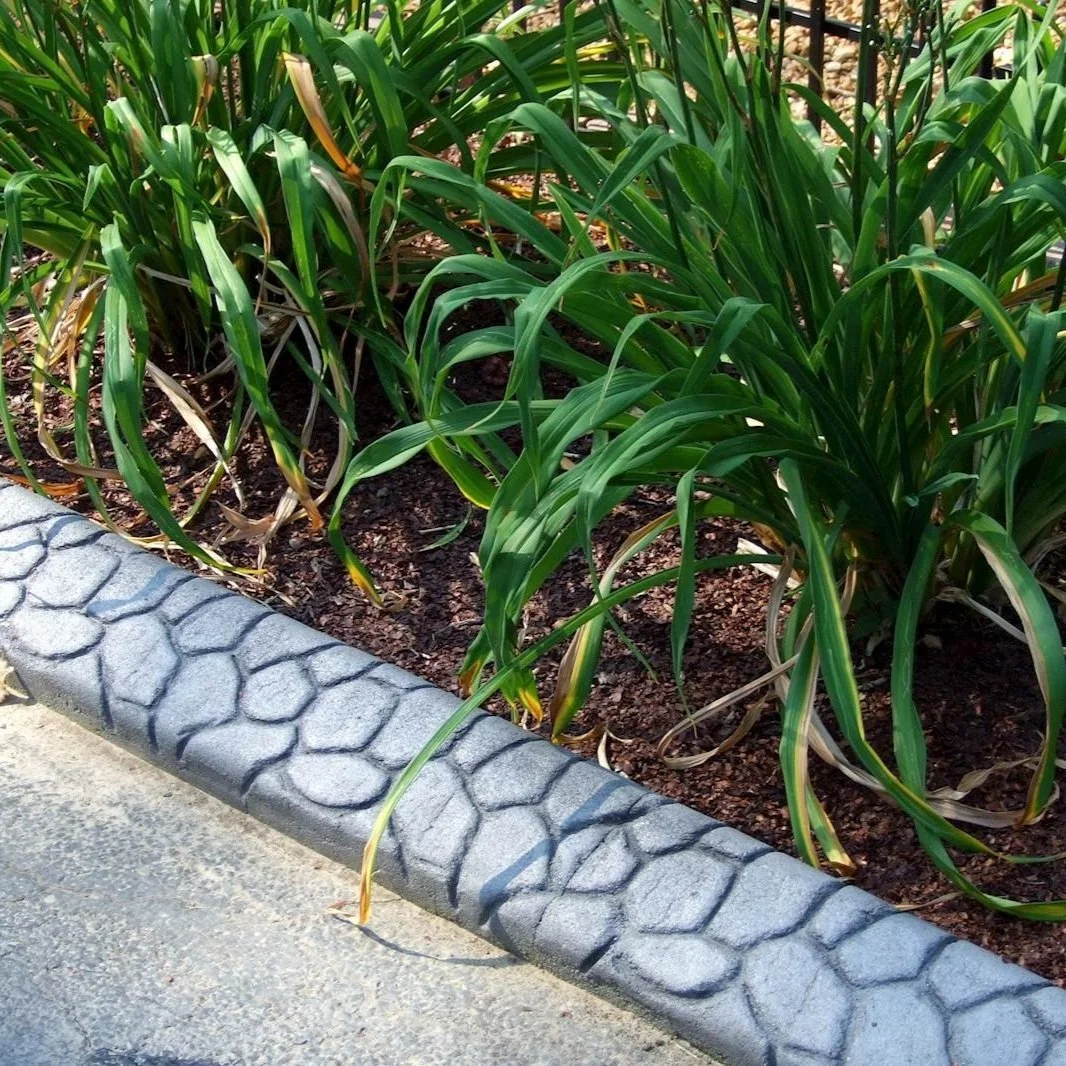 Poured-in-place, reinforced concrete edging won’t shift, rot, or fade like plastic or wood borders.